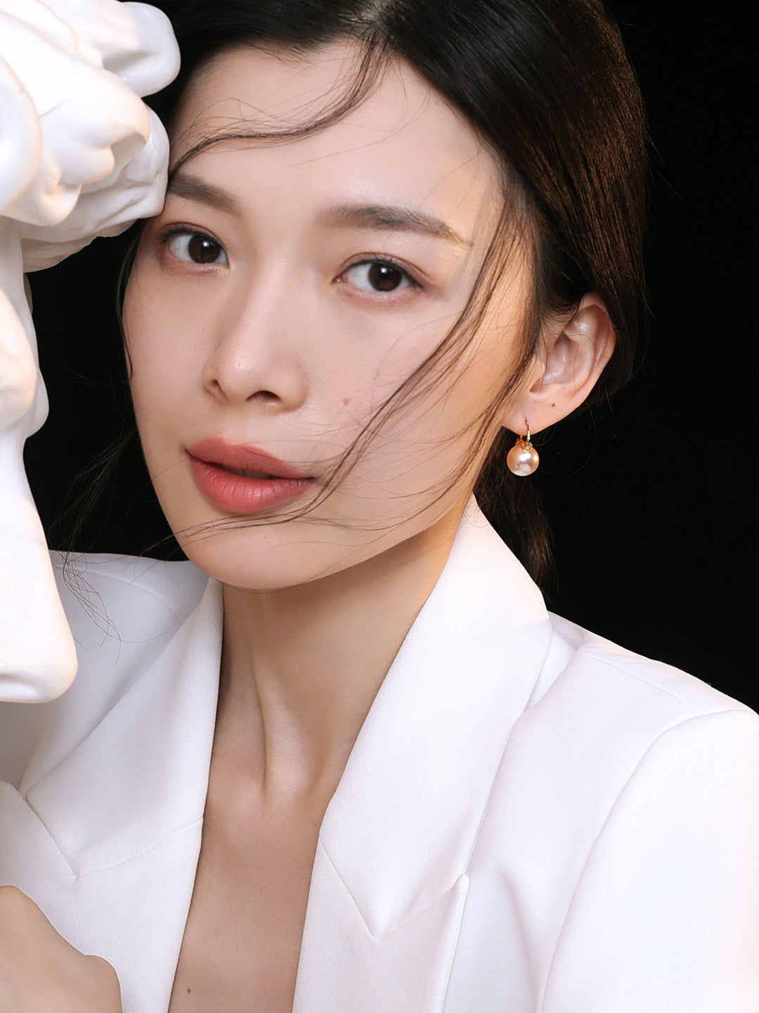 柔らかな光を放つ淡水パールと、繊細なカーブラインが耳元に上品な気品を添えるエレガントイヤリング。