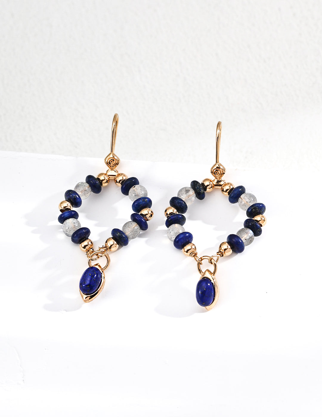 深みのあるネイビーのラピスラズリと、透明感あふれるクリスタルが耳元を華やかに見せるフープピアス。